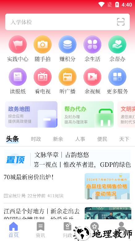 4、点击底部或顶部的 “资讯” 板块,可查看并使用其中提供的众多服务。