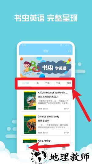 1、用户可以根据自己的英语水平在首页选择入门级到四级的分级阅读内容,便于循序渐进进行英语学习。