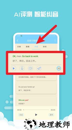 4、ai语音评测功能支持用户跟读训练,并智能评分纠音,帮助纠正发音提升口语水平。