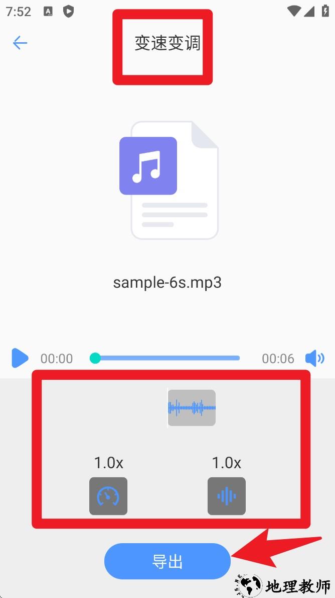 4. 在变速变调中可分别调整播放速度与音调,设定好后点击导出完成编辑。