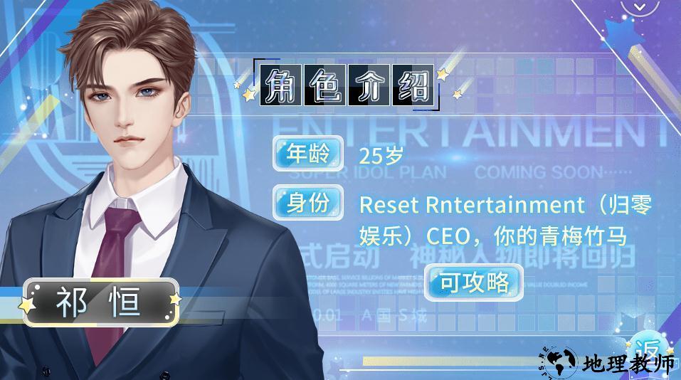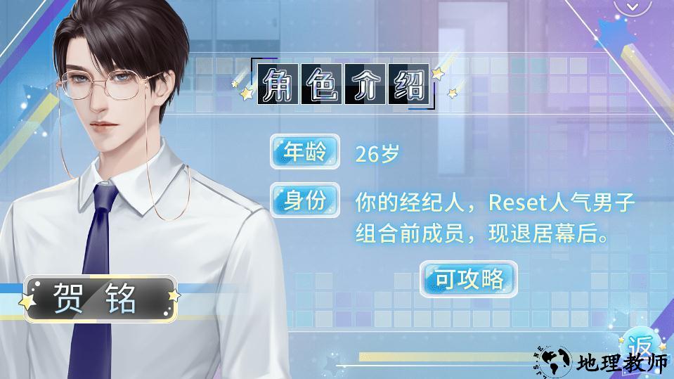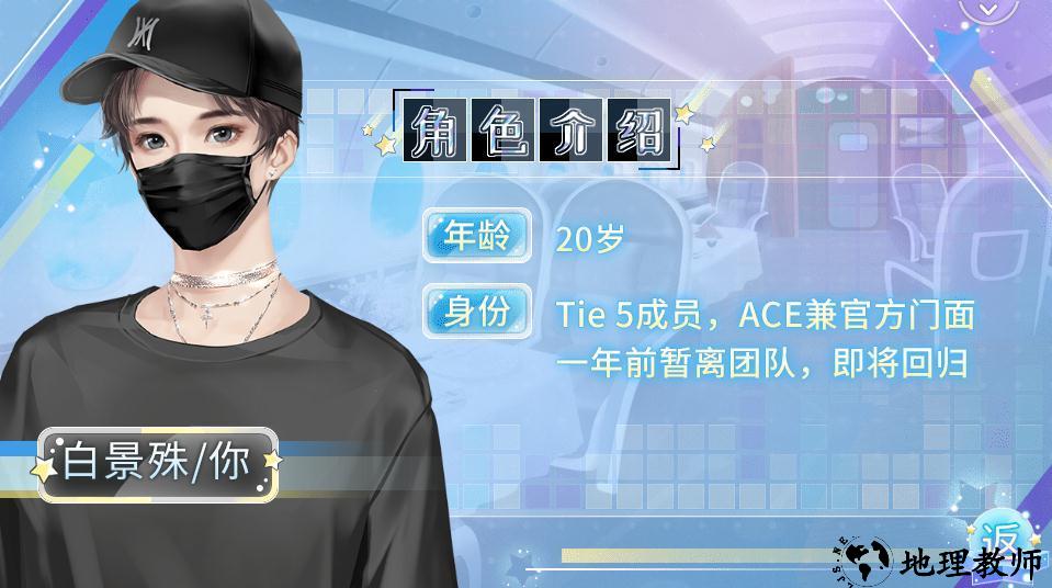 1. 游戏设定在一个充满魅力的娱乐圈背景中,玩家将扮演一个可爱又帅气的男孩子,与各型各色的美男子展开互动。