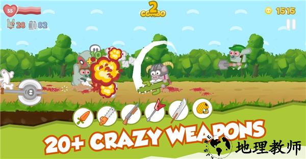 4. 敌人种类:游戏中的敌人种类繁多,有普通的僵尸兔子、轰炸机头、生猪生气迷你老板,还有驾驶飞机的敌人等,每种敌人都有独特的攻击方式和弱点。