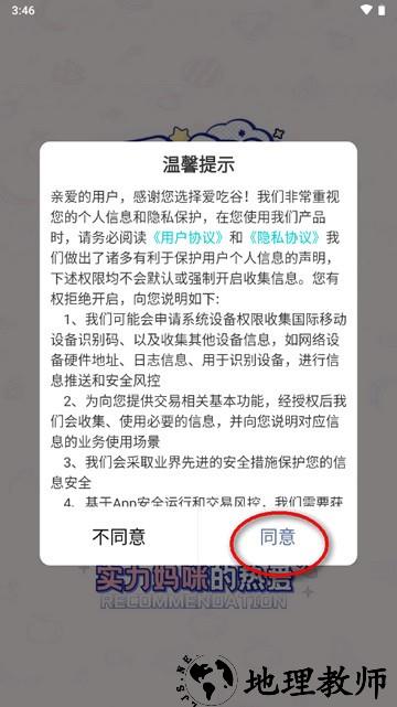 1、打开爱吃谷 igoods,点击右下角同意按钮即可继续使用。