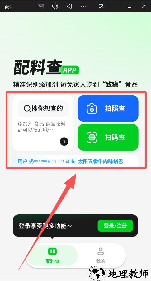 操作:在首页点击“扫码查”,直接扫描食品包装上的条形码。