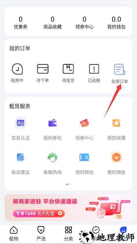 2、租赁下单操作:选择设备与租期套餐,使用优惠券抵扣租金。电子签约后24小时发货,全程短信通知进度。
