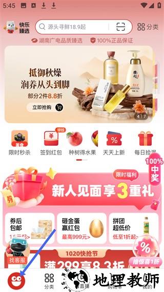 1、首页设有抵御秋燥润养从头到脚活动,部分商品 2 件 8.8 折,还有限时秒杀、签到红包等功能,新人可享 3 重礼,满 299 元享 8.3 折优惠。