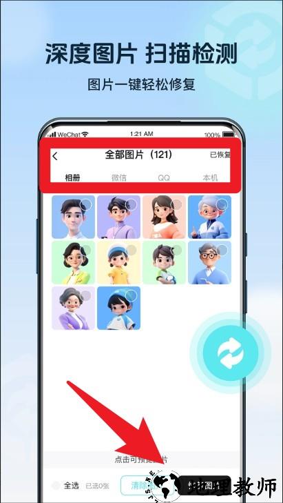 3. 进入图片扫描页面后,选择目标图片,点击恢复图片即可快速完成修复。