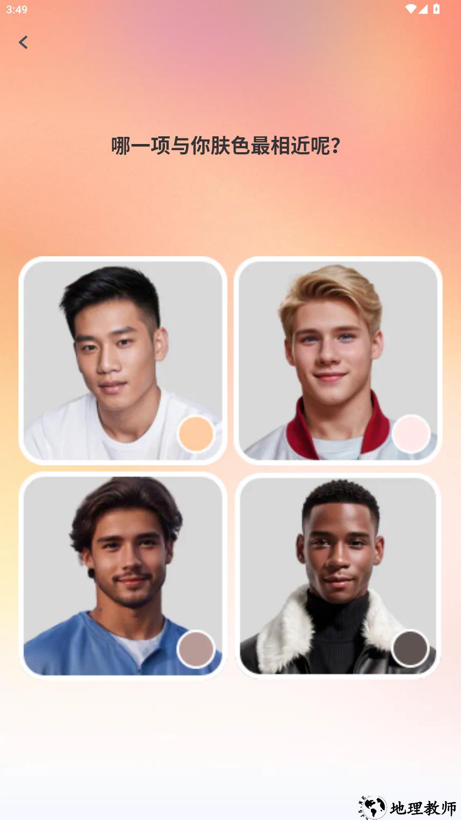 3、性别选择后,挑选面容特征,包括肤色、眼睛、鼻子、下巴形态等。