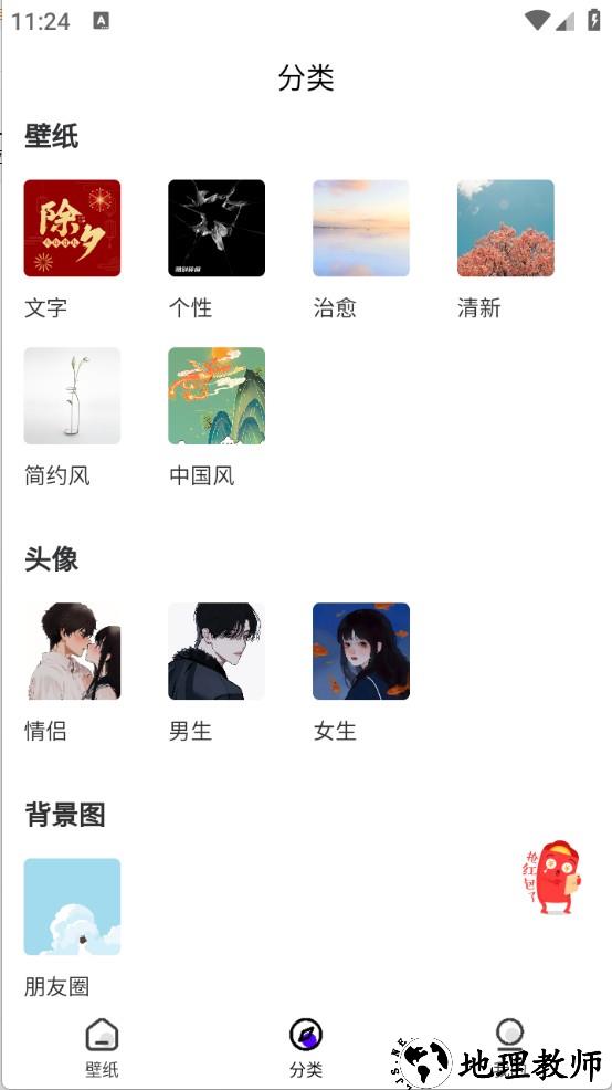 3、分类页面提供壁纸、头像、背景图等多样资源选择,覆盖不同使用场景。