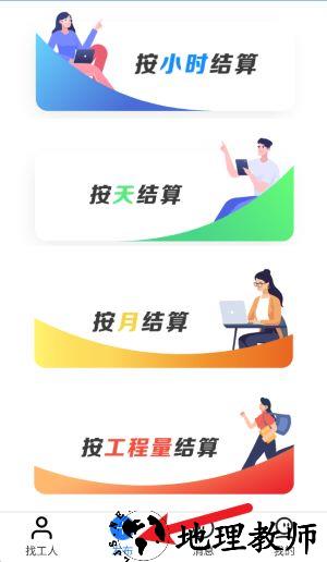 3、点击底部发布按钮,可根据需要选择按小时、按天、按月或按工程量等不同结算方式发布招工信息。