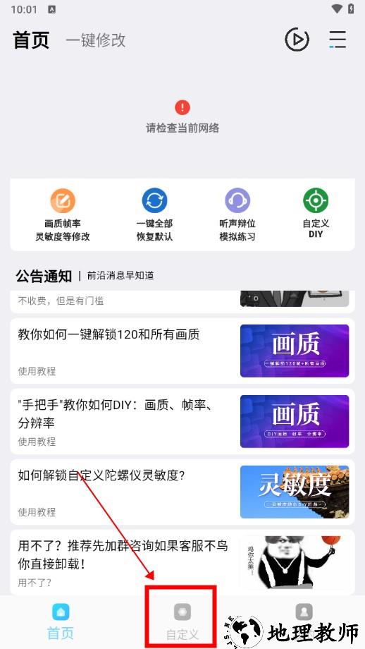 1、在本页下载并安装画质魔盒,完成后打开软件,点击下方 “自定义” 选项进入设置界面。