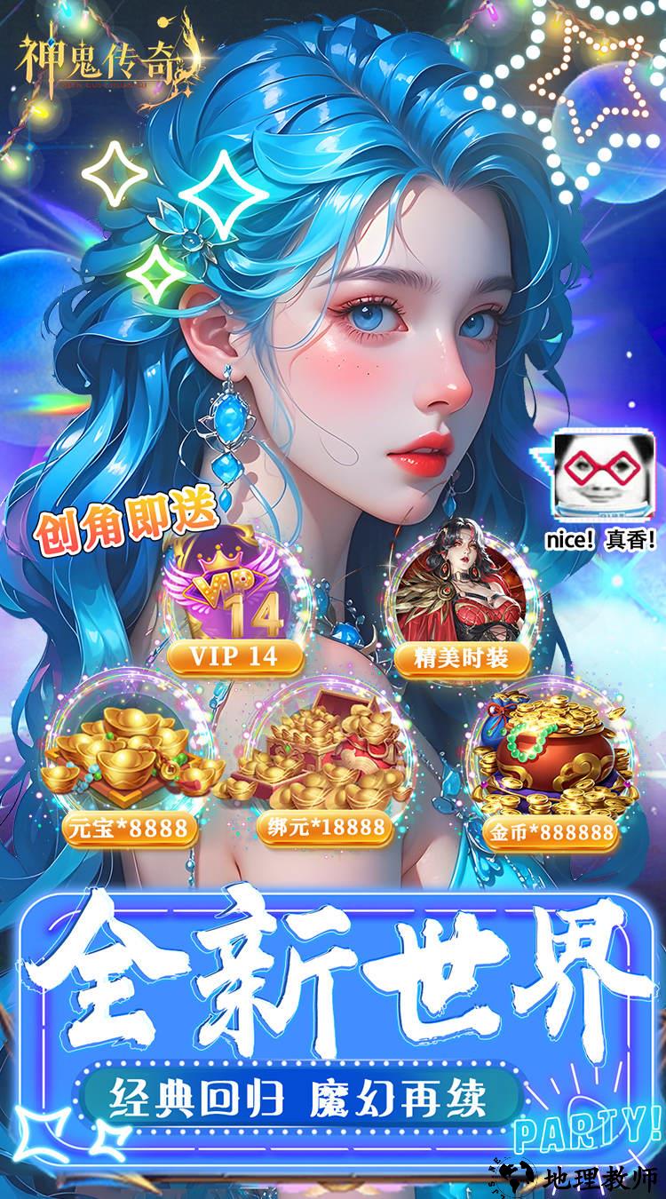 1、角色创建即享豪华礼包,内含:特权国王身份、GM5等级特权、1000元充值卡×1、绑定元宝×88888、顶级宠物【处女·波瑟芬】×1、限定时装【纯真年代】×1、珍稀素材紫水晶×500、海量金币1888万,更直接赠送满星随从助战。