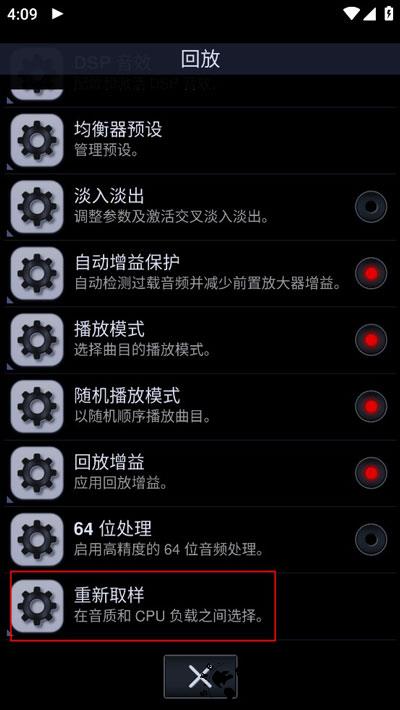 3、在回放设置中,找到 “重新取样” 功能并点击。