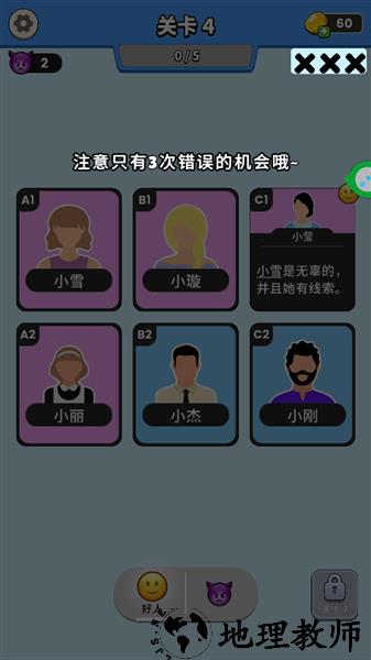 4、智力挑战:对智力水平提出了较高挑战,核心玩法围绕 “有限信息挖掘” 展开 —— 需从碎片化线索中筛选关键信息,结合逻辑推理还原事件真相,应对对手的策略博弈与突发状况,全程锻炼逻辑思维、应变能力与决策判断力。