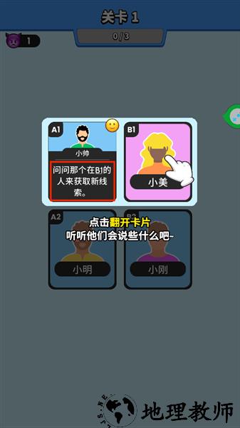 2、每个关卡都会有几张卡牌是公开的,玩家通过第一张卡牌给到的信息进行推测。