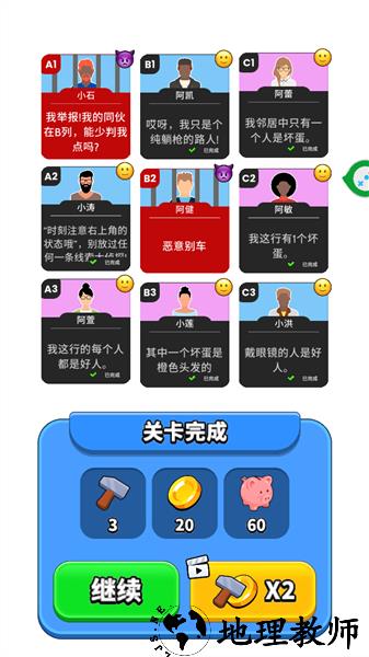 探案过程中,需制定专属推理策略,凭借严谨的逻辑思维逐步缩小嫌疑范围,最终精准定位卧底。是对智力的直接考验,更要求具备灵活应变的能力与前瞻性的策略规划思维,每一步决策都关乎探案成败。