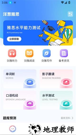 1、下载并安装洋葱雅思 APP,根据个人备考需求,选择对应模块开展针对性练习。