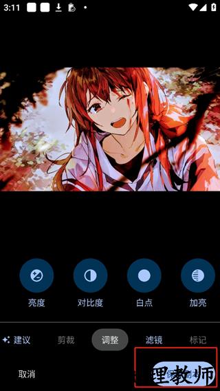 2、选中照片后进入编辑界面,可使用内置编辑器添加滤镜、自动增强或裁剪图像;