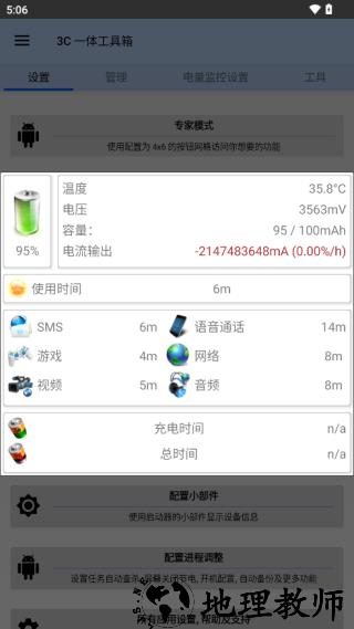 4、电池管理器:帮助分析和改善电池消耗,提供完整数据、充电周期历史及消耗估计;