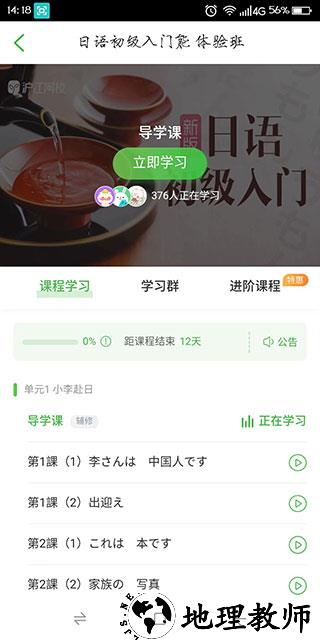 5、进入课程学习界面,若为日语新手(以小编为例),可从入门课程开始学习;