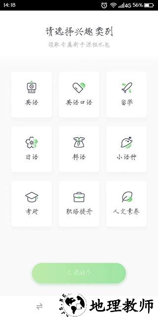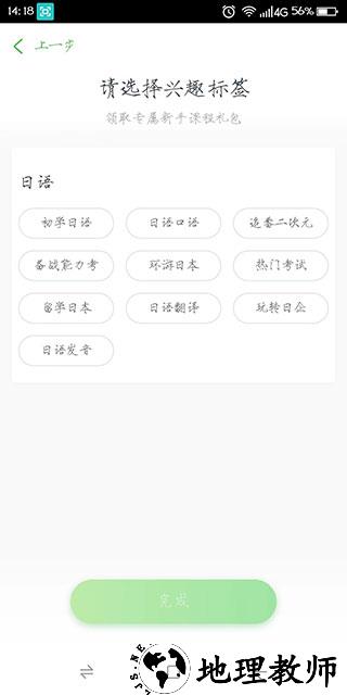 2、根据自身日语水平选择兴趣标签,便于平台依据需求推荐更优质的日语课程;