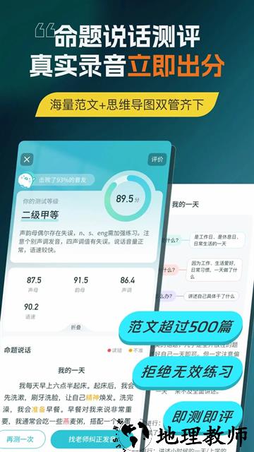 1. AI智能评测系统:采用与真实考试同源的语音识别技术,对用户发音进行五维评分(准确度、语调、规范度、流畅性、完整性),评分结果与真实考试误差控制在3-5分以内,帮助用户精准定位问题。