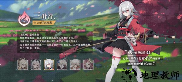 荒神联动角色,性格善良温柔,总是设身处地地为他人着想的少女。因所在村庄遭遇到荒鬼的袭击而失去了自己最后的亲人为了继承弟弟的夙愿一-拔除尽世间一切的荒鬼,三叶音毅然选择加入了斩鬼一番队。