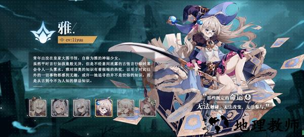 常年出没在皇家大图书馆,自称为雅的神秘少女虽然平时言行如孩童般无异,但是不经意间流露的古怪言行却时常会令人一头雾水。雅对深奥的知识有着极端的热枕,以至于对此以外的一切事物都感到无趣,或许···她追寻的并不是世俗的知识,而是从古到今不为人知的禁忌知识。
