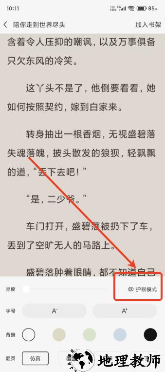 4.打开护眼模式,这样在阅读的过程可以保护好用户的视力。