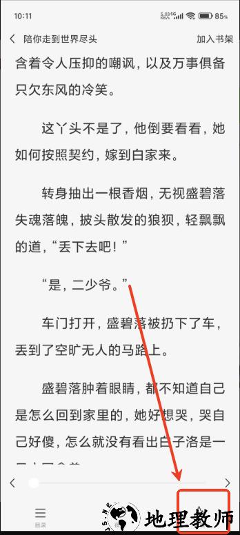 3、进入小说阅读页面后,字体大小、背景颜色、翻页模式等均可按个人喜好自由调整。