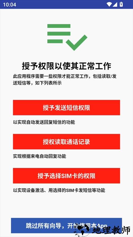 2、完成电池优化关闭后,授予软件短信、通话、SIM 卡相关的必要权限。