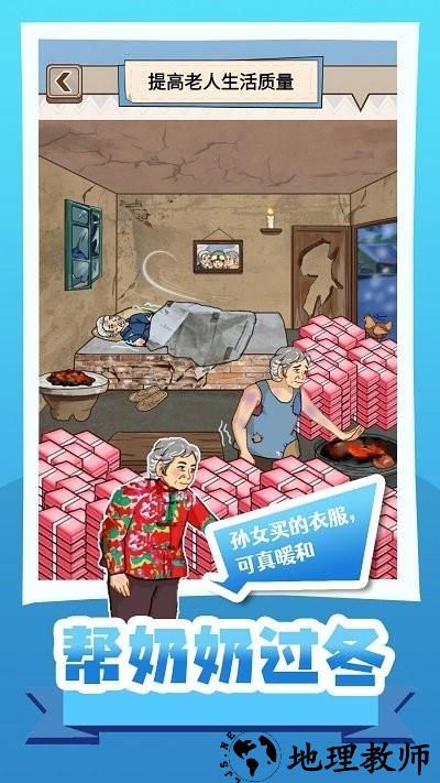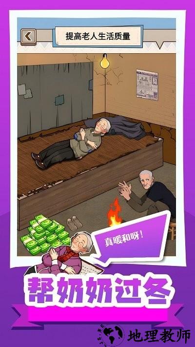 《帮奶奶过冬》是一款充满温情与挑战的安卓小游戏。游戏背景设定在寒冷的冬日,玩家要帮助年迈的奶奶顺利度过这个冬天。玩家需要通过各种操作来为奶奶解决取暖、饮食、保暖衣物等一系列生活难题。画面风格温馨质朴,以细腻的笔触描绘出冬日场景与奶奶和蔼的形象。游戏过程中充满趣味与关怀,能让玩家真切感受到照顾他人的责任与乐趣,仿佛真的在陪伴奶奶度过艰难的冬天。