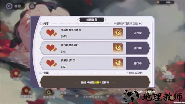 ① 共享任务:每日可完成的「共享任务」次数为3次,且任务提交完成的次数由「所有可唤醒角色」共享,完成任务后将消耗一次的完成次数,次数为0后无法继续获得任务奖励;