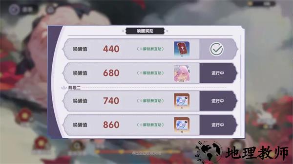 每当到达一定的唤醒值后,可以领取唤醒奖励,奖励包括物资奖励以及与角色新的唤醒互动。