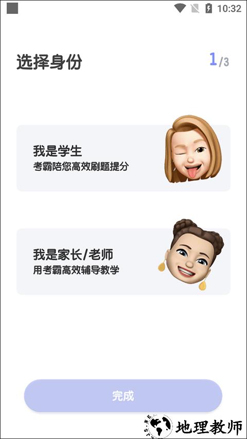 1、启动软件后,首先选择对应身份,可选学生、家长或老师身份;