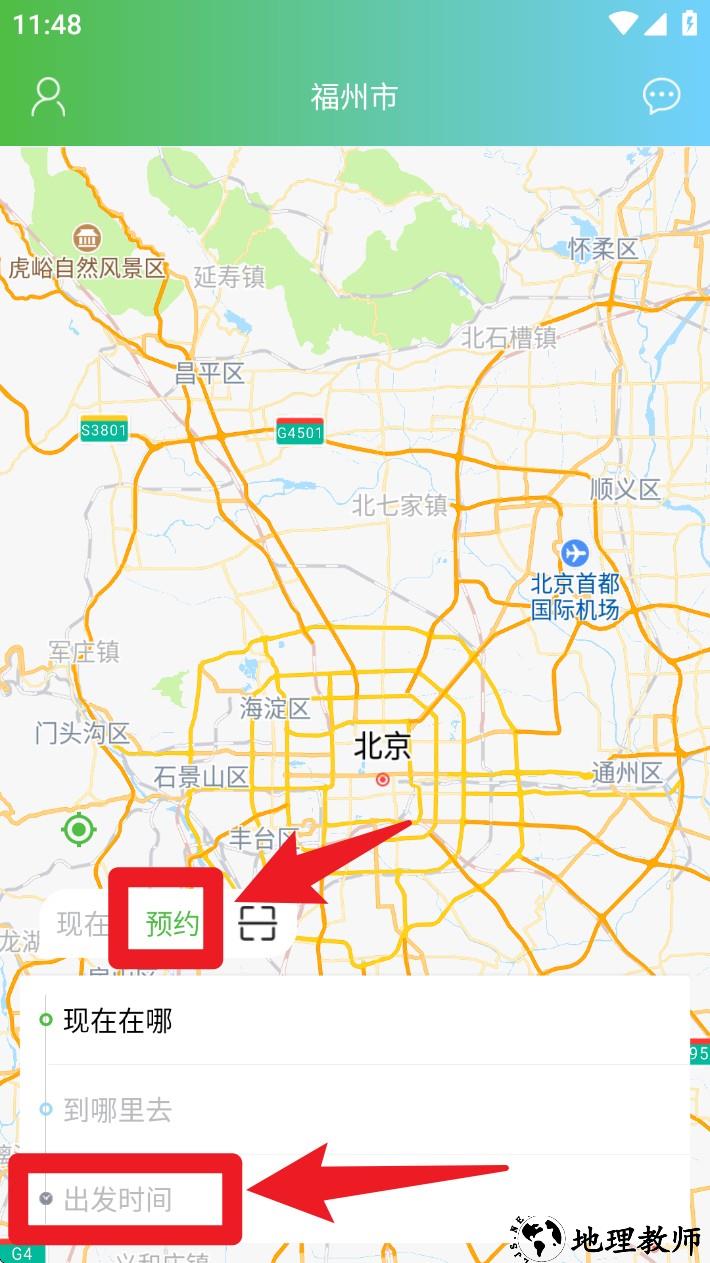 3. 若需预约用车,可切换为预约模式,并选择计划的出发时间与地址信息。