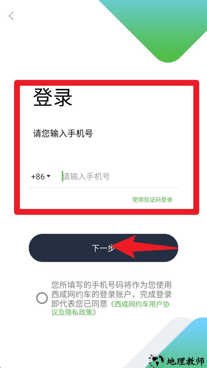 1. 打开App输入手机号码并点击下一步,完成验证码验证后即可登录平台使用服务。