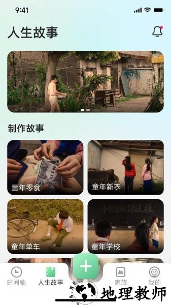 2. 点击下方导航栏中的人生故事按钮,进入后可选择推荐、童年回忆等分类浏览内容。