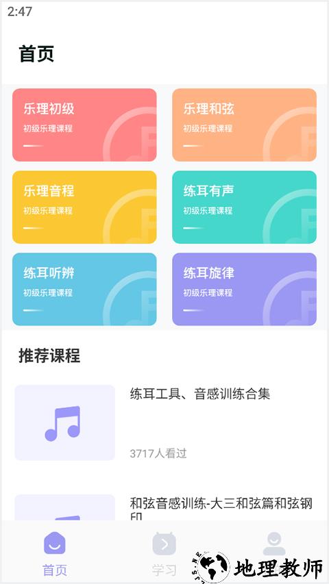 2、系统化乐理课程:涵盖从入门到进阶的乐理知识,包括五线谱阅读、调式调性、音程识别、和弦结构等内容;