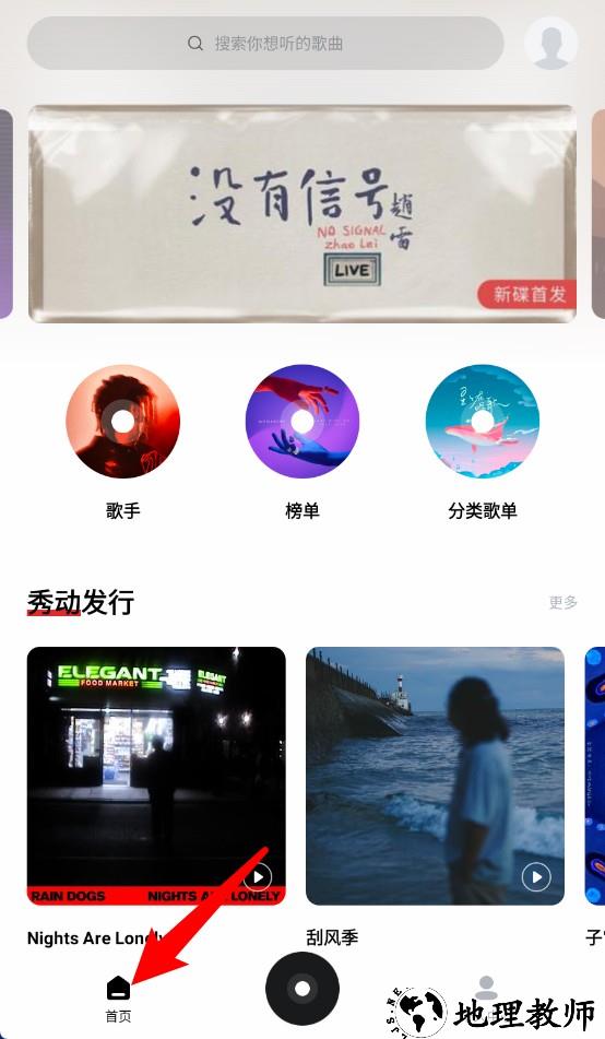 1、进入首页可浏览推荐内容、歌手专区、热门榜单与分类歌单等多种入口。