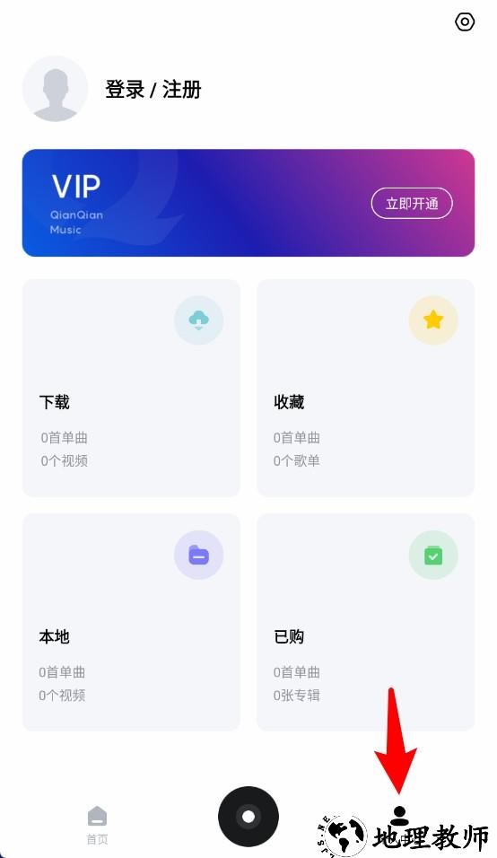 5、个人中心可登录查看收藏、下载记录、本地音乐与已购专辑等信息模块。