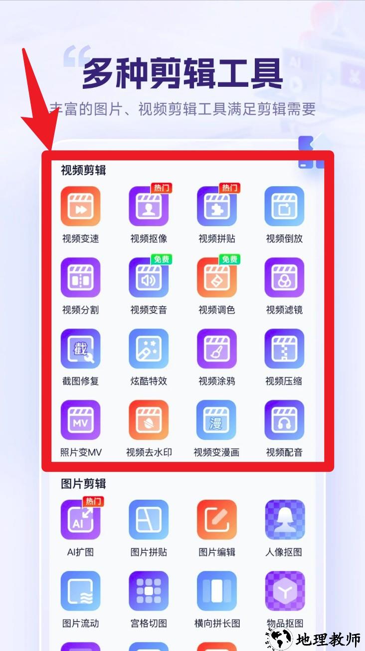 2、在线学习资源:提供短视频制作与剪辑教学等内容,帮助用户系统提升剪辑技能。