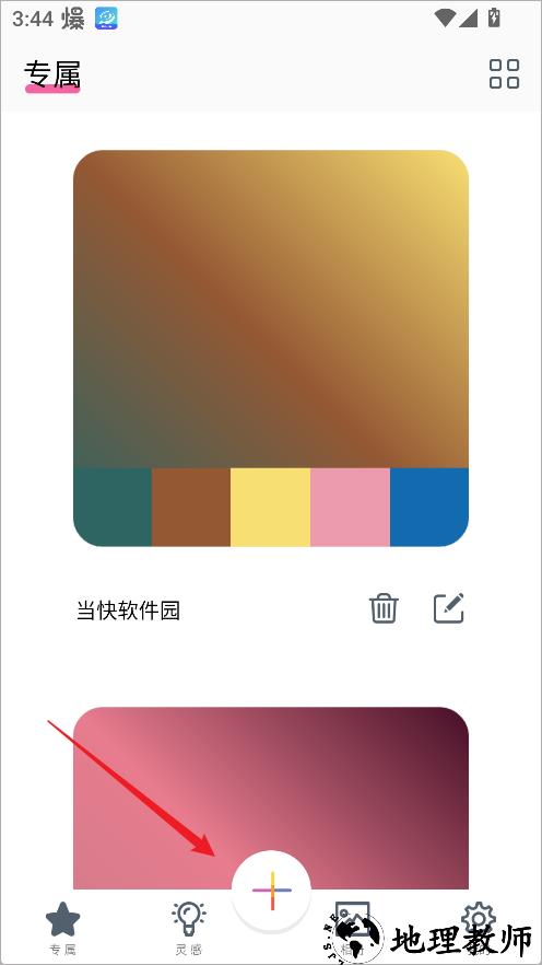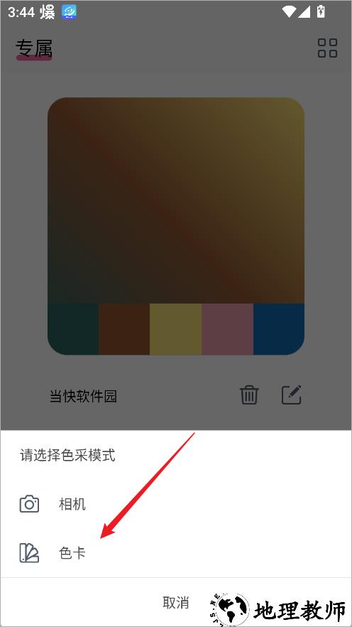 2、点击 “+” 按钮后,在弹出的选项中选择 “色卡”,进入配色编辑专属界面。