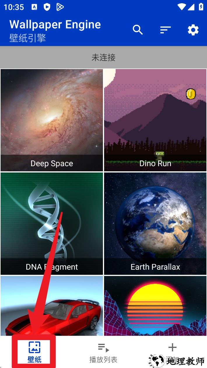 1. 打开App后点击底部的壁纸页签,即可浏览本地壁纸库,预览当前可用的动态壁纸资源。