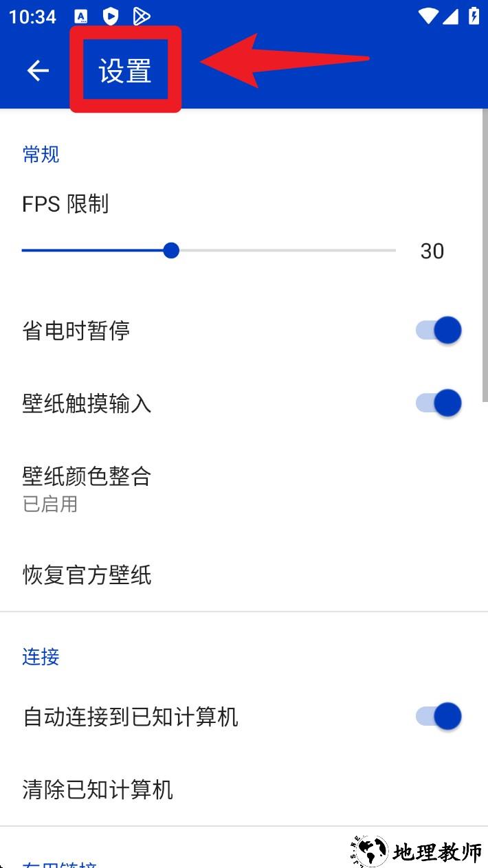 4. 点击首页右上角齿轮图标进入设置界面,自定义帧率、触控效果、颜色整合等播放参数。