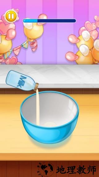 2、进入第一个游戏,准备开始制作美味蛋糕,先去倒入美味的牛奶;