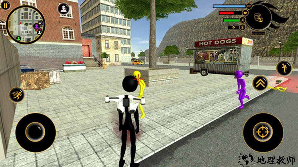 1. 玩家通过虚拟摇杆控制火柴人的移动方向,精准操作以躲避陷阱和攻击敌人。