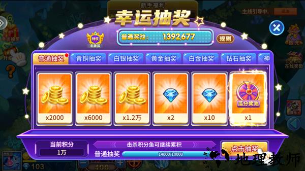 4、捕获积分鱼后可以获得随机范围的积分,积分可以进行抽奖,鱼的倍数越高,获得基础积分越多。
