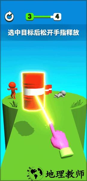 1、实际操作方法非常简单,移动手指可以选择抓取的目标,可以是游戏中的任何物体,选中目标后松开手指即可完成释放。