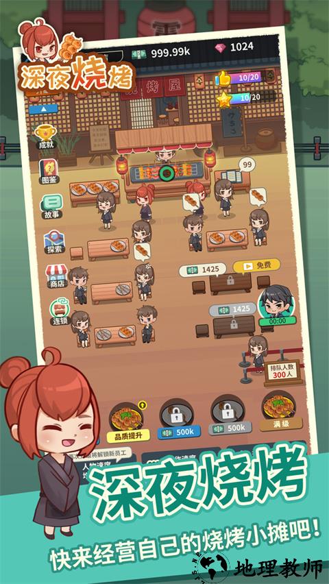 只需简单点击即可完成菜品升级,解锁更多色香味俱全的烤品。随着服务员接待能力的提升与厨师烹饪技巧的精进,您将能充分满足各路食客挑剔的味蕾,见证小店生意日益红火。